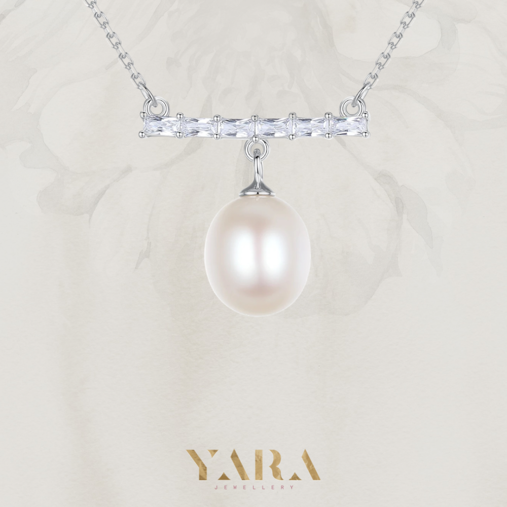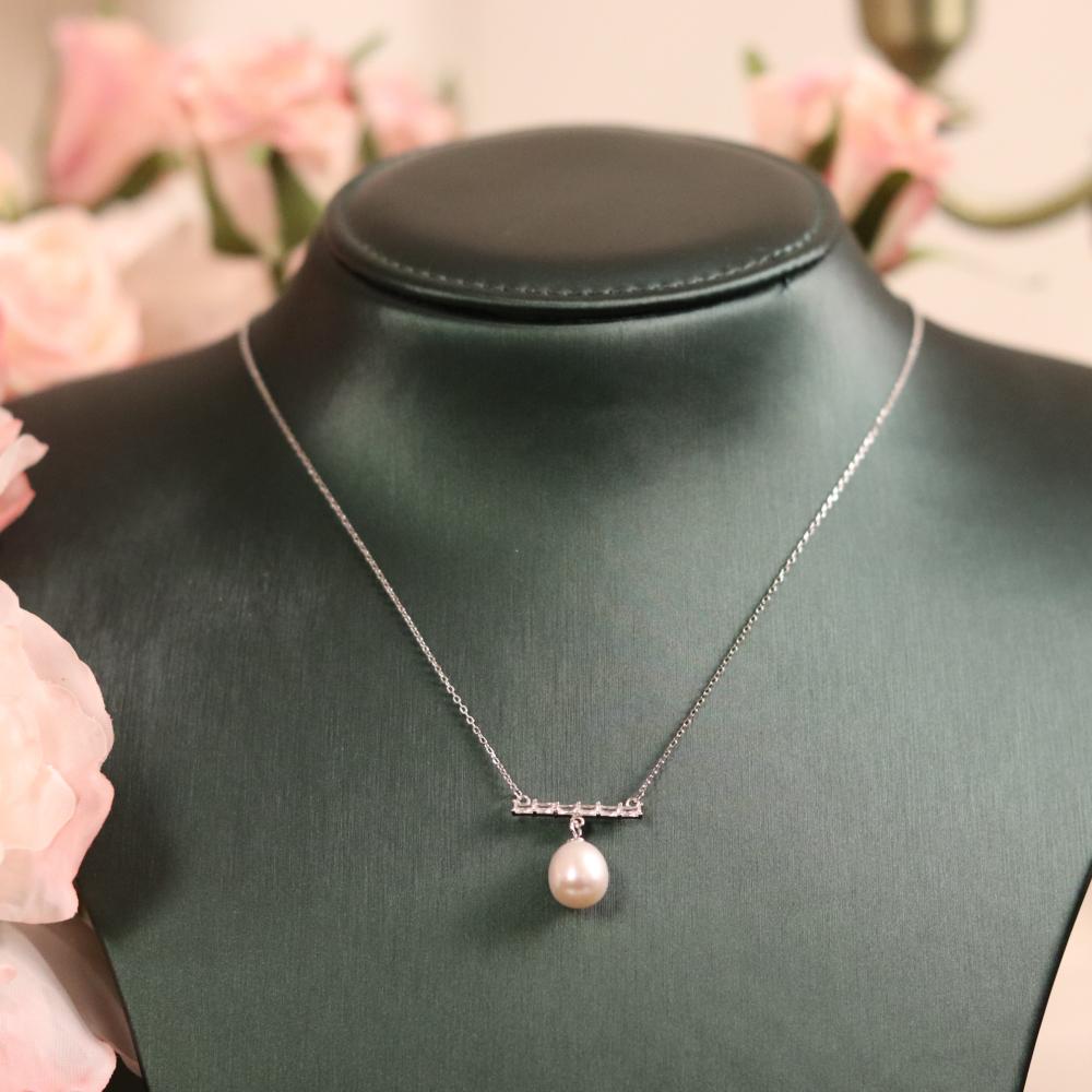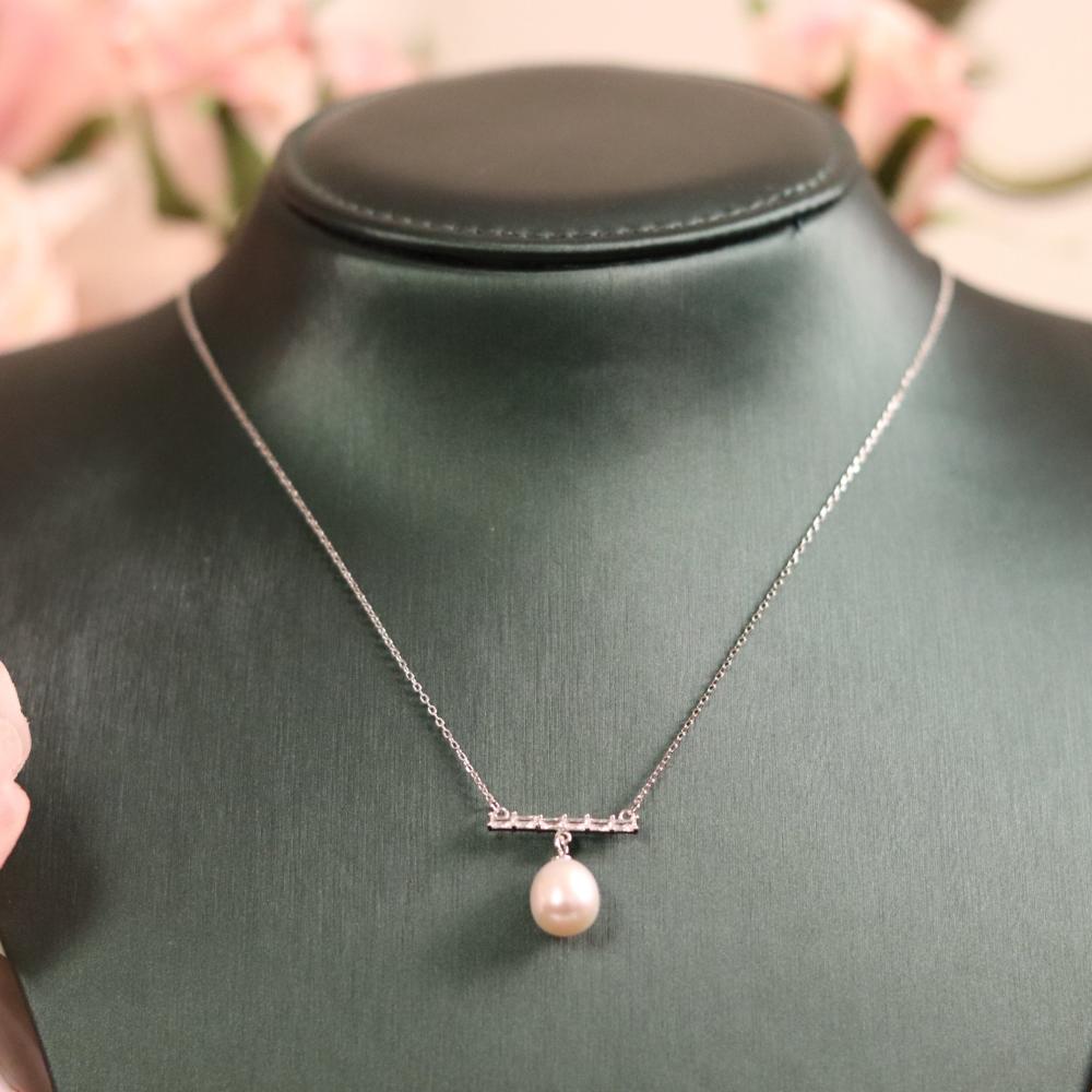 عقد الرقي من الفضة عيار ٩٢٥ وحجر الزركون واللؤلؤ 🌸✨